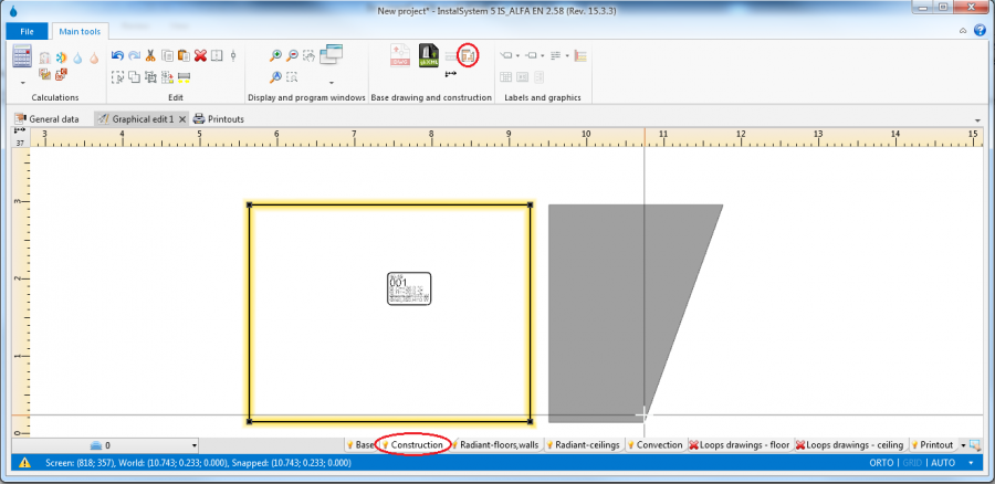 Il modo di base dell'introduzione dei dati del sistema progettato nel pacchetto InstalSystem 5 è l'edizione grafica. La progettazione consiste nell'immettere oggetti - elementi dell'impianto - nel disegno e nel collegarli bene. Il lavoro si svolge sui disegni dei piani dell'edificio. Un'installazione creata così può essere modificata in qualsiasi modo, i suoi frammenti possono essere copiati come pure ci si possono svolgere altre operazioni.